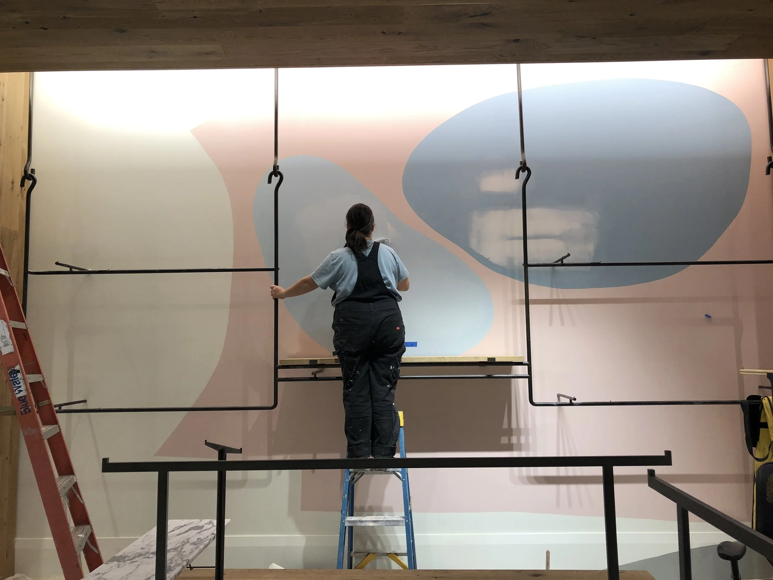 Project Details: Rebecca was lead artist of a team of 5+ artists to paint and produce large-scale retail store murals for the luxury brand, Aritzia. Rebecca worked with fellow muralist, Marshall Okin of Art Etc, to complete and produce this project.