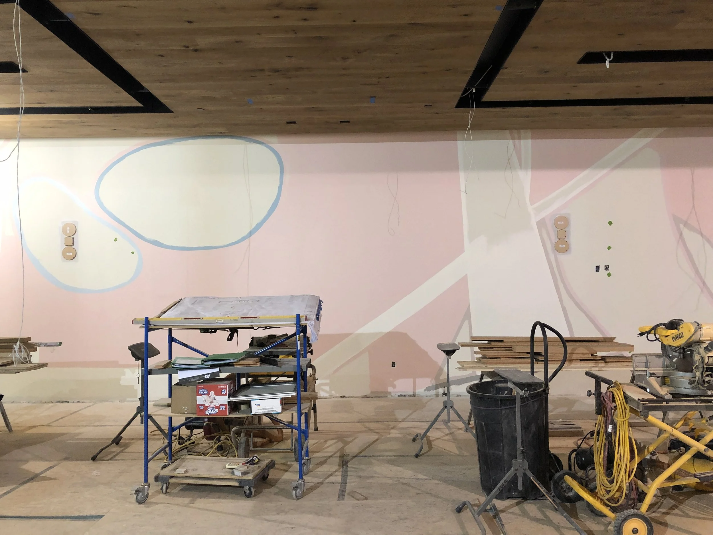 The designs for this large-scale interior mural were technical and exact. The designs had to be replicated as they were designed by the in-house design team. We had to use specific techniques and problem solving in order to achieve the smooth finish the client was asking for.