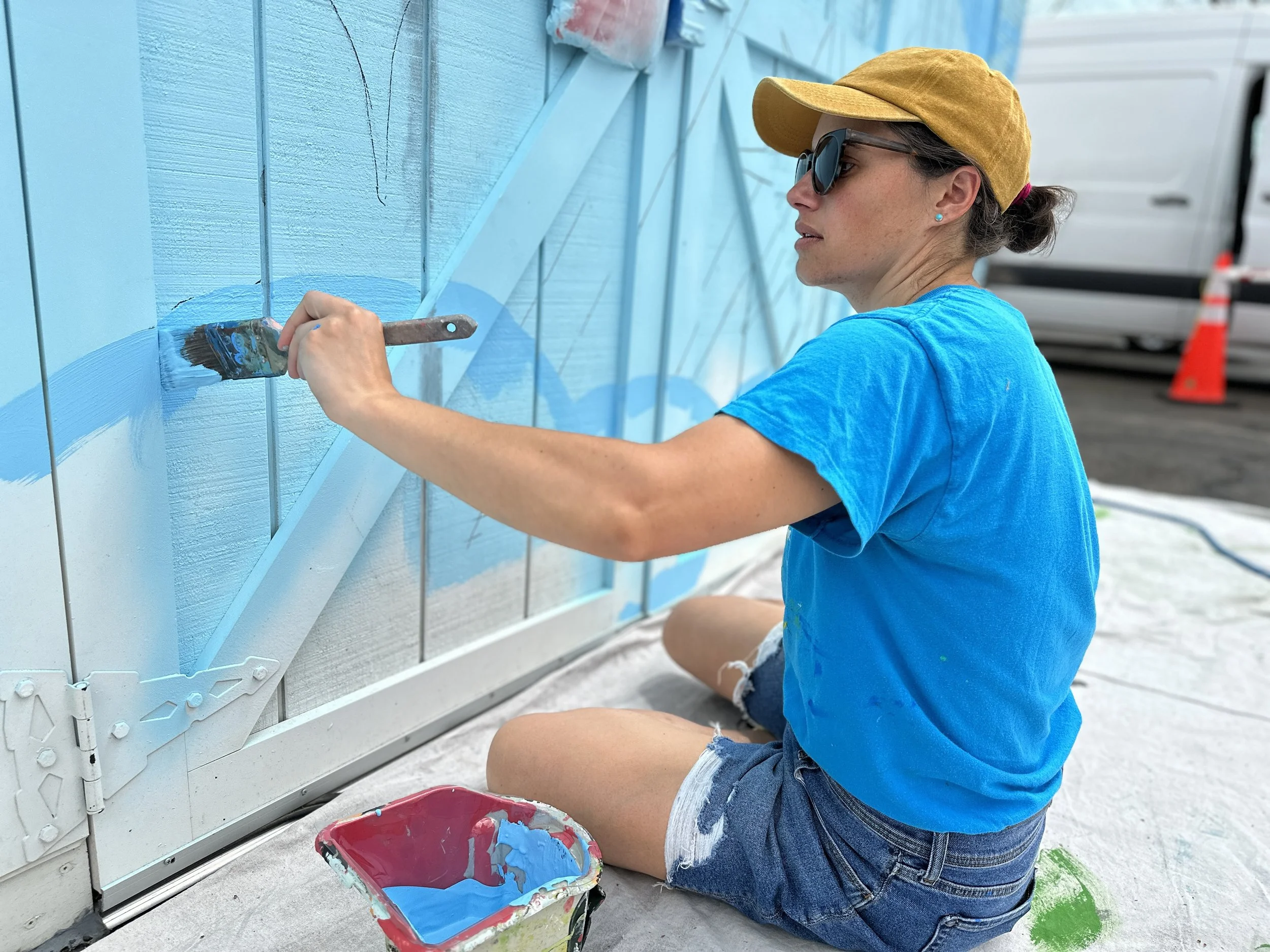 Illustrator and muralist Rebecca Pry painting a mural on site the Make-A-Wish campus in Trumbull, CT